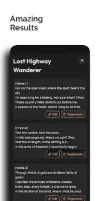 Features: Genre Versatility: Tailor your lyrics to fit any musical style. Editable Sections: Fine-tune your chorus, verses, and more with ease. Regeneration Capability: Not quite satisfied? Regenerate sections until they're perfect.