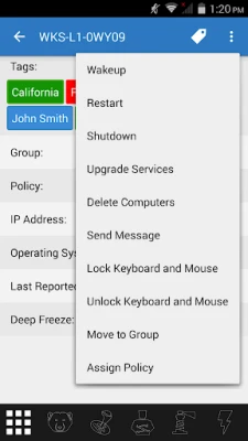 * Perform on demand actions on multiple computers such as Reboot Frozen, Reboot Thawed, Wakeup, Restart, Shutdown, Run Windows Update, Send Message, and Add Tags.