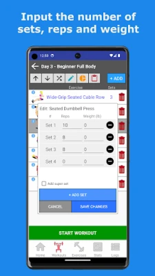 This simple and easy to use gym workout planner & tracker allows you to plan and log your workouts (including sets, reps, 1RM, weight lifted and more).