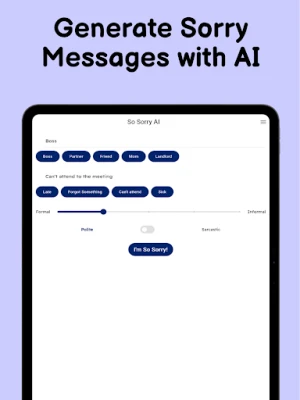 Missed a meeting, forgot an anniversary, running late, or simply had a rough day? Our app helps you craft the perfect excuse or apology message in seconds — powered by advanced AI that understands context, tone, and human emotion.