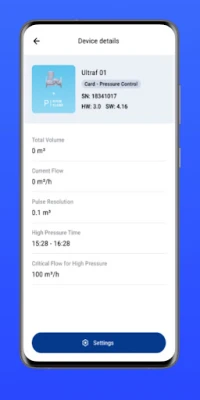A combination of an Ultrasonic water meter and Hydraulic valve measures and displays instant flow and total quantity. The unit can also regulate flow and pressure and be controlled remotely or independently. All settings are effective via the smartphone app.