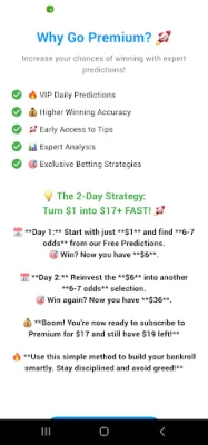 Content Access: Subscribers receive over 30 fixtures with various odds and markets, including 1x2, Over/Under (1.5, 2.5, 3.5), Both Teams to Score (BTTS), Double Chances, VIP Daily Predictions, higher winning accuracy, early access to tips, and expert analysis.